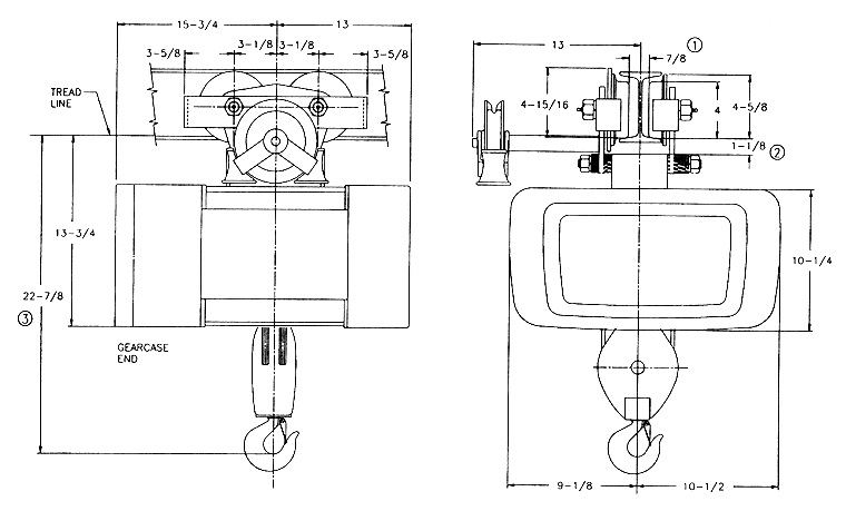 3) Dimension increases 3" when hoist is equipped with