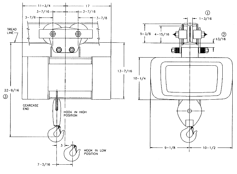 Trolley beam size range - beam flange width 3-3/8" min.,